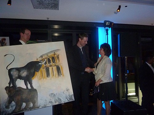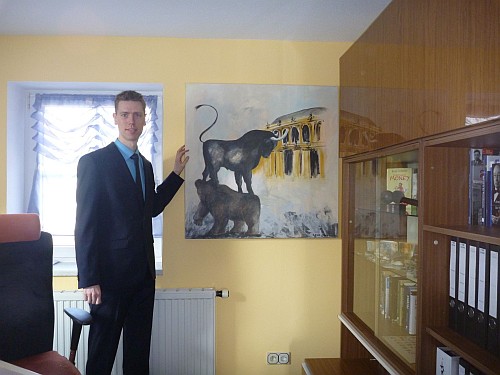 "Bei Online-Konferenzen mit Videoübertragung von Gregor Janecke, Optimal Banking Akademie, sieht man mein Werk "Hebelwirkung", welches er auf dem Charity-Event der Deutschen Anlegermesse ersteigert hat."